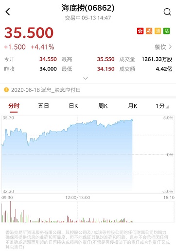 智通财经APP获悉,天风证券发布研报,认为未来应该关注海底捞(06862)的第二成长曲线,管理体系与餐饮新业态有望碰撞出新火花,探索智能化和新技术是长期战略目标。作为火锅乃至餐饮行业的龙头公司,海底捞能够享受龙头溢价。该行首次覆盖海底捞,给予“买入”评级。截至发稿,海底捞涨4.56%,报35.55港元,成交额4.42亿港元。