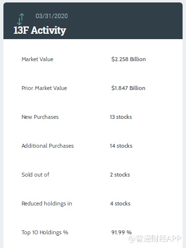LTD)日前向美国证监会(SEC)递交了2020年第一季度(Q1)持仓报告。该公司持仓总市值为22.58亿美元,19年四季度持仓总市值为18.47亿美元,环比增长22.25%。