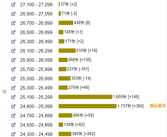 智通财经APP获悉,截至5月13日,恒指最新的牛熊街货比例40:60。摩根恒指牛熊证街货分布图中的数据显示,熊证街货重货区在24900-25099区间,该区间最新熊证数量为1737张,较上一交易日增加300张,最多新增区间也在该区间。牛证街货重货区在23400-23599区间,该区间最新牛证数量为1365张,较上一交易日增加55张,最多新增也在该区间。