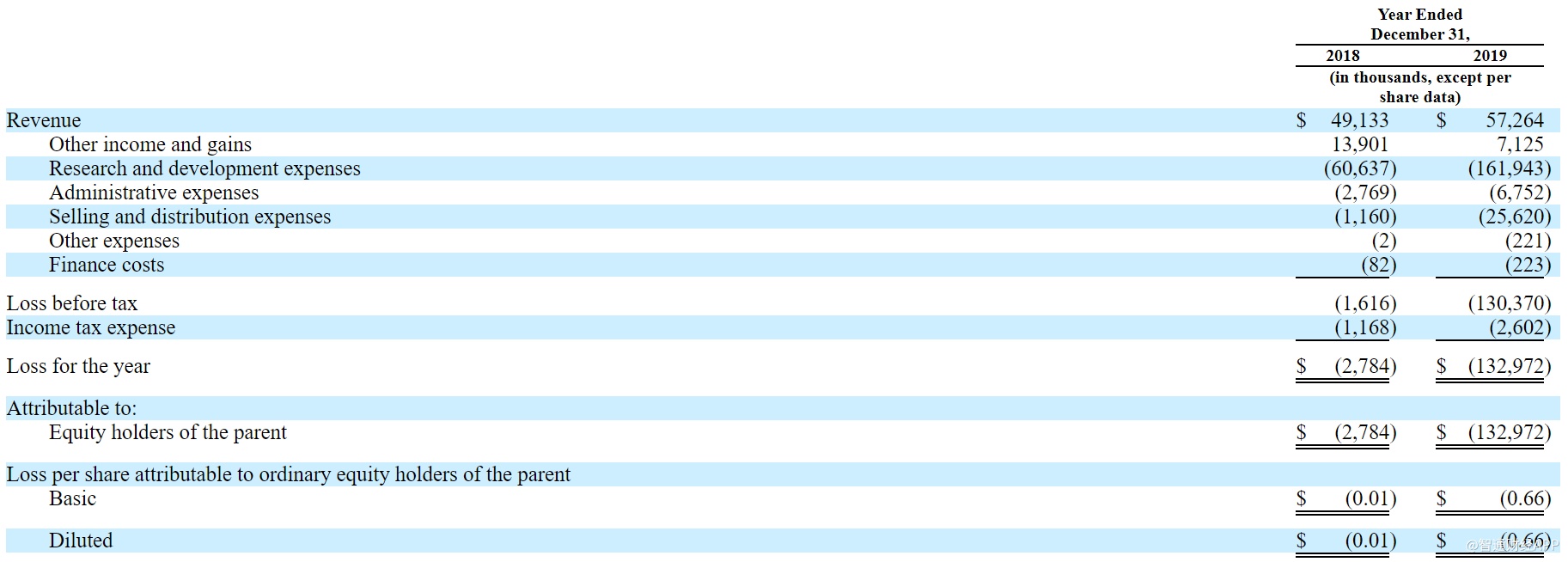 根据招股书中披露的财报,2019年,公司营收5726.4万美元,较2018年的4913.3万美元增长17%;净亏损为1.32亿美元,摊薄每股亏损0.66美元,2018年净亏损为278.4万美元,摊薄每股亏损0.01美元。