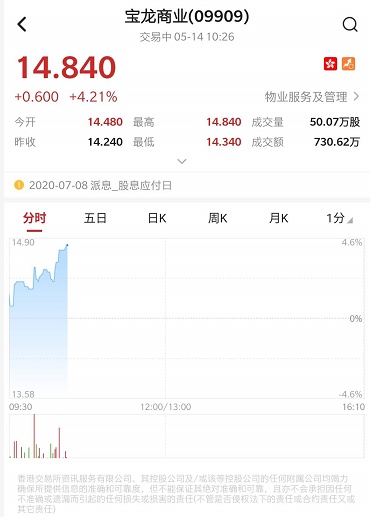 智通财经APP获悉,MSCI明晟公布半年度指数成分股检讨结果显示,宝龙商业(09909)获纳入中国小型股指数,变动将于5月29日收市后生效。该股今日逆市攀升,盘中高见14.82港元,继续刷新历史新高。截至发稿,涨4.07%,报14.82港元,成交额727.66万港元。