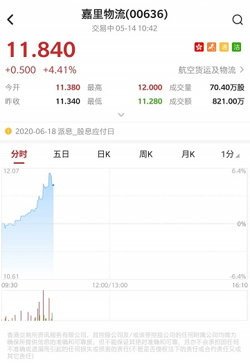 智通财经APP获悉,大和发表研究报告,将嘉里物流(00636)评级由“买入”降至“跑赢大市”,目标价上调6%,由11.8港元调高至12.5港元。大和表示,嘉里物流管理层预期首季净利润同比下跌,但称有信心上半年核心净利润跌幅少于5%,较该行预期好。截至发稿,嘉里物流涨4.41%,报11.84港元,成交额821万港元。
