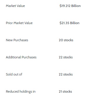 该机构本季度持仓总市值为192.12亿美元,上一季度持仓总市值为213.5亿美元,环比减少10%。第一季度维京全球投资持仓新增标的20只,增持22只,减持21只,并对22只标的进行了清仓处理。