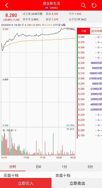 智通财经APP获悉,建业新生活(09983)将于5月15日挂牌,利弗莫尔证券资料显示,截至暗盘收盘,报价为8.28港元,较招股价6.85港元上涨20.88%。每手1000股,不计手续费,每手赚1430港元。