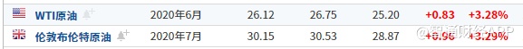 截至发稿,WTI原油涨3.28%,报26.12美元/桶。布伦特原油涨3.29%,报30.15美元/桶。