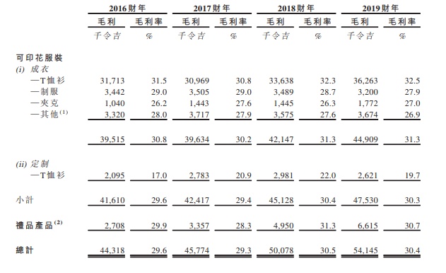 成衣可印花服装的毛利增加与所产生的收益增加一致,由2016财年的约3951.5万令吉增至2017财年的3963.4万令吉、2018财年的4214.7万令吉及2019财年的4490.9万令吉。同时,其毛利率由2016财年的约30.8%小幅减至2017财年的约30.2%,并进一步增至2018财年的约31.3%,并于2019财年维持稳定在约31.3%。