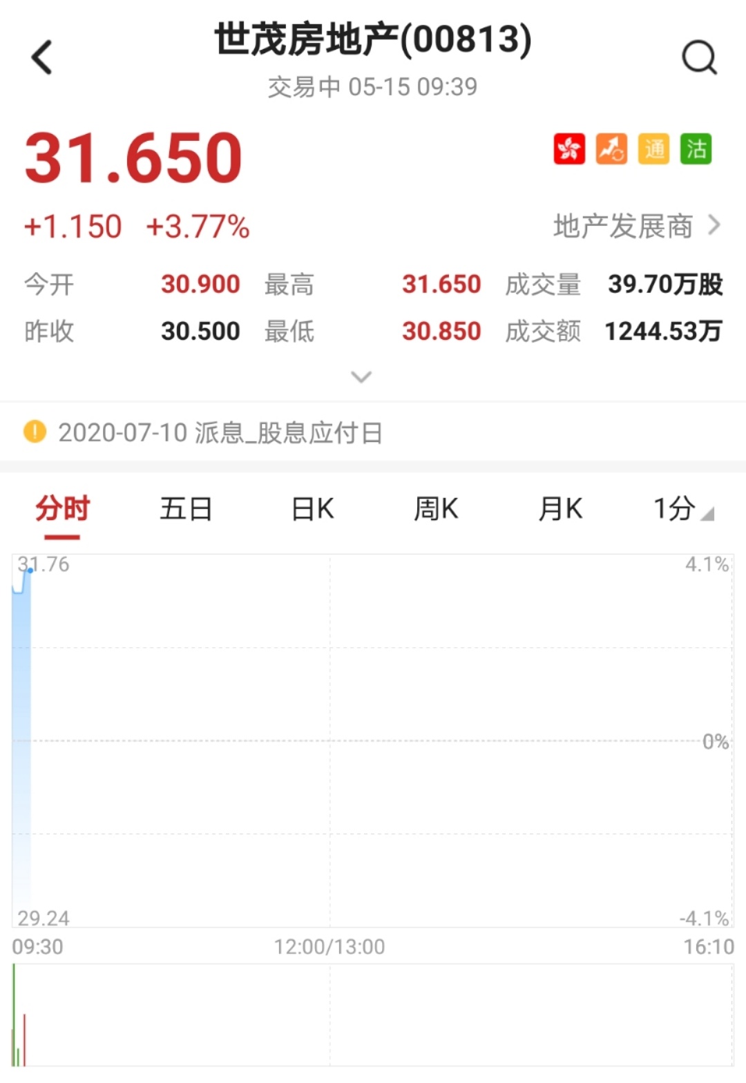1.30 亿美元及 1.14 亿美元,该股早盘涨超4%,突破所有均线。截至9时39分,涨3.77%,报价31.65港元,成交额1244.53万。