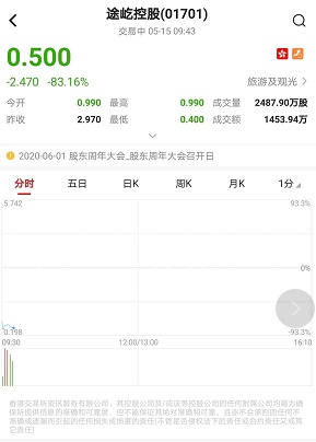 智通财经APP获悉,途屹控股(01701)早盘股价闪崩,暴跌逾80%暂居跌幅榜首位,截至9时43分,跌83.16%,报价0.5港元,成交额1453.94万。