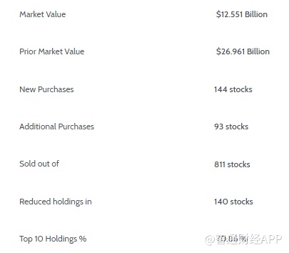 第一季度,野村控股的总持仓市值为125.51亿美元,上一季度为269.61亿美元,环比下滑53%。季度内,野村控股新增持仓标的144只,清仓标的811只,同时增持标的93只,减持标的140只。公司前十持仓占比为70.86%,持仓时间为0.2个季度,总持仓时间为8.29个季度。