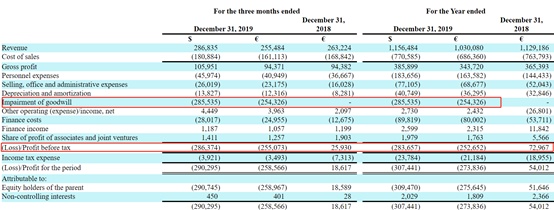 同期商誉和无形资产达到10.25亿欧元,令万达体育时时背负商誉减值的风险,2019年2.54亿的商誉减值对于业绩的影响已毋庸置疑,而这一影响还将伴随万达体育。
