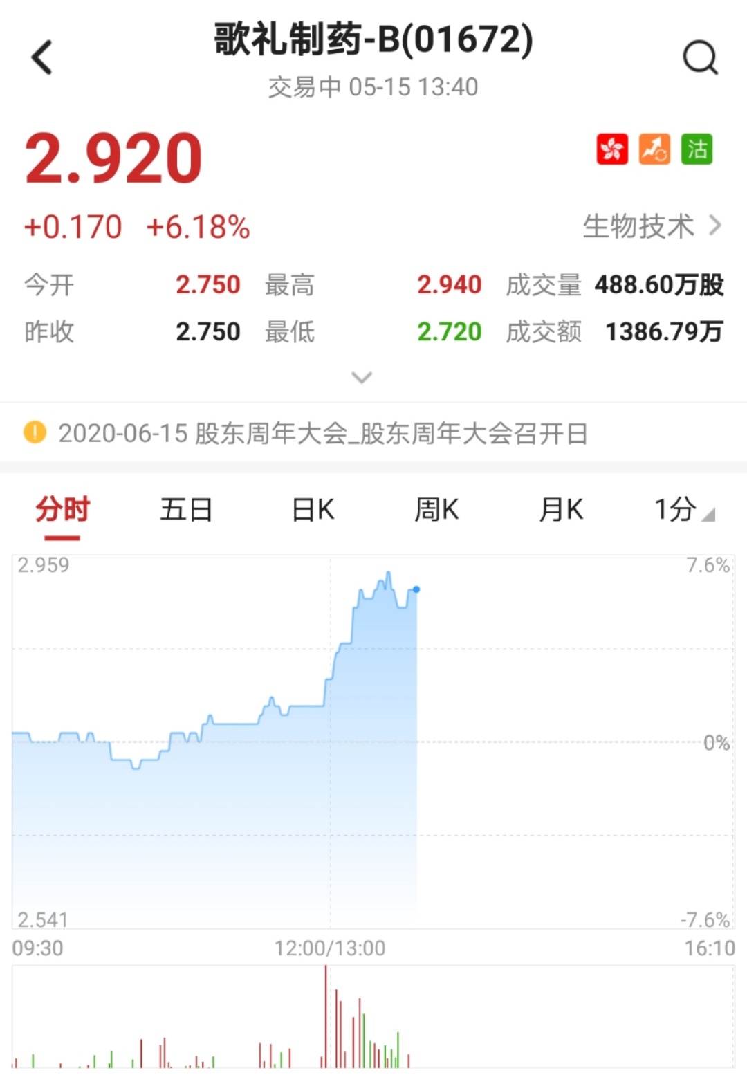 Steatohepatitis,简称NASH)1类创新药ASC41临床试验申请获中国国家药品监督管理局批准。该股盘中涨超7%,突破多条均线。截至13时40分,涨6.18%,报价2.92港元,成交额1386.79万。