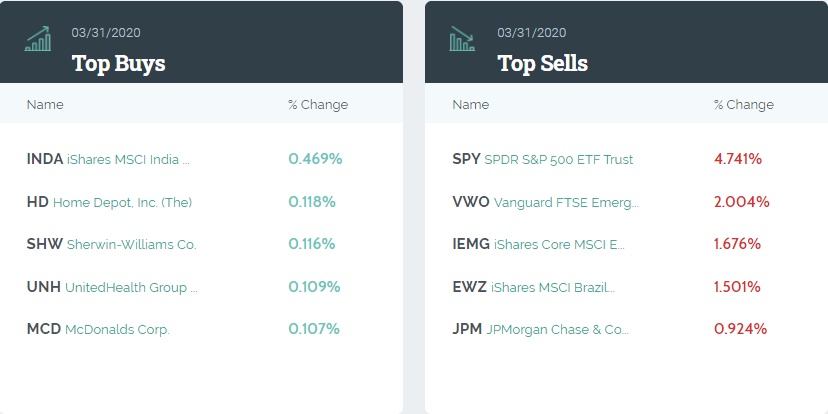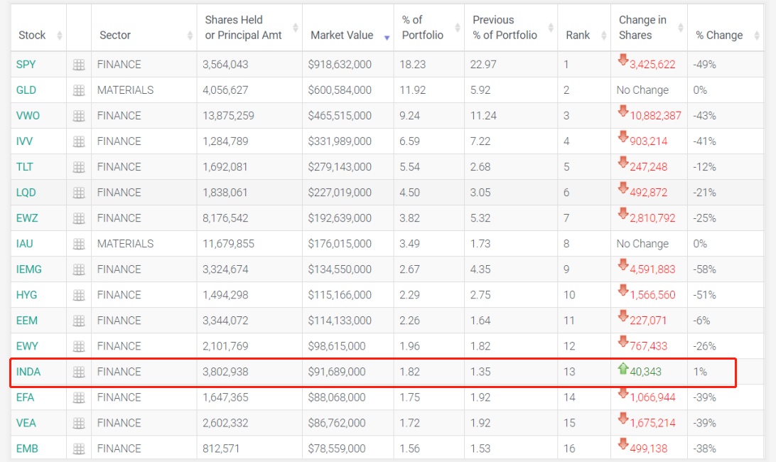而另一方面,卖出的前五大股分别为标普500指数ETF-SPDR 、新兴市场ETF-Vanguard MSCI、新兴市场core ETF-ishares (IEMG.US)、巴西ETF-ishares MSCI(EWZ.US)以及摩根大通 (JPM.US)。