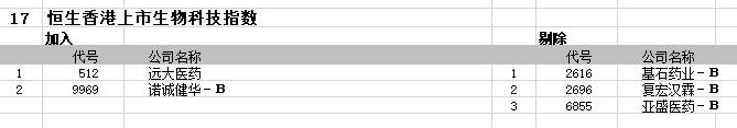 据悉,恒生香港上市生物公司指数发生变动,纳入了远大医药(00512)和诺诚健华-B(09969)。