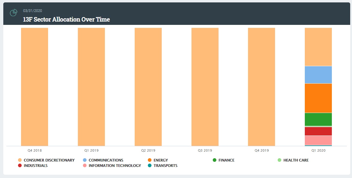 从行业分布可以看出,“公共投资基金”在进入2020年后丰富了自己的持仓结构,从原来的只持有非必需消费品行业标的,增加了通讯、能源、金融等行业。