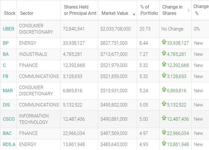 从增持数目可以看出,除优步外,这些耳熟能详的美股明星股,都是在一季度建仓的。
