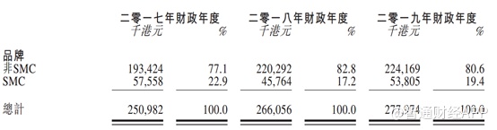 而从收入占比看,非SMC品牌已经成为主要收入来源,2017至2019年,其收入占比分别为77.1%、82.8%及80.6%,同时期SMC收入占比则在20%左右。集团主要为美国客户制造产品,而主要以本集团自有SMC品牌及以客户A的品牌出售的产品乃自身为制造商的本集团供应商采购,并销售给不同客户。