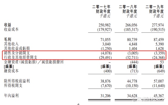 而2019年的净利润增速远超收入,主要是因为代工生产模式下,分销费用和行政费用可以得到更好的控制,另外也与2018年启动IPO增加费用支出有关。2017年-2019年,公司收入成本占收比由71.69%降至68.54%,毛利率小幅上升,销售及分销开支占收比由1.62%降至1.21%,行政及其他经营开支占收比更是由11.75%降至8.77%。