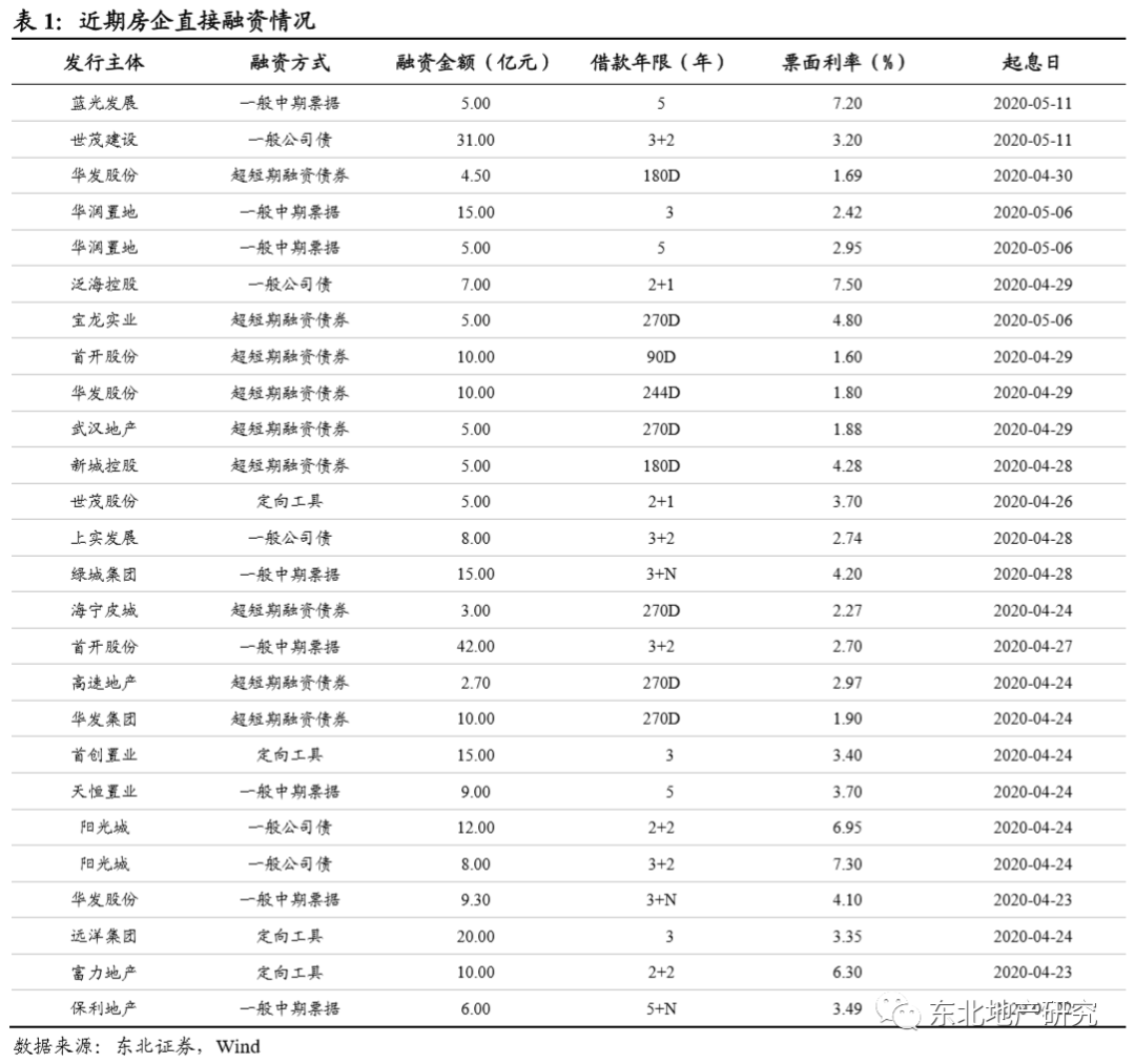 融资环境方面则保持较为宽松的态势,我们于周报中定期跟踪房企公开债券融资成本,春节以来债券发行成本大多低于2019年发行水平。