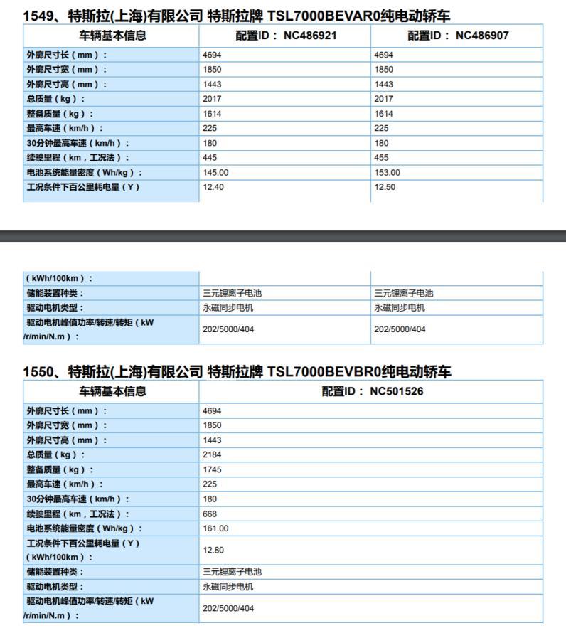 其中包括特斯拉(TSLA.US)牌TSL7000BEVAR0、TSL7000BEVBR0纯电动轿车,采用三元锂离子电池。