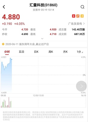 智通财经APP获悉,汇量科技(01860)延续涨势,盘中以4.92港元创52周新高,截至10时14分,涨4.05%,报价4.88港元,成交额687.35万。