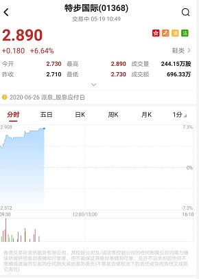 智通财经APP获悉,特步国际(01368)近期获大和重申“买入”评级,目标价看高至3.3港元,该股盘中大幅反弹,截至10时49分,涨6.64%,报价2.89港元,成交额696.33万。