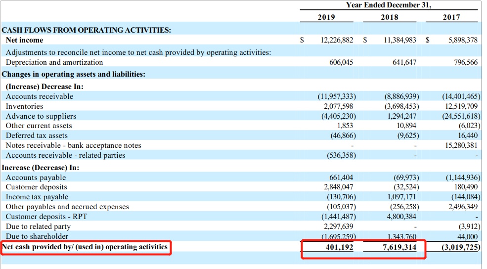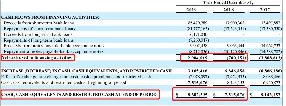 2019年公司在经营活动中现金流净流入40.1万美元,相比去年同期的761.9万美元减少了94%;在融资活动中使用的现金净流流入为290.4万美元,而2018年同期现金流流出70万美元;年终持有的现金和现金等价物为860.2万美元,相比去年同期的751.5万美元,同比增加14.4%。