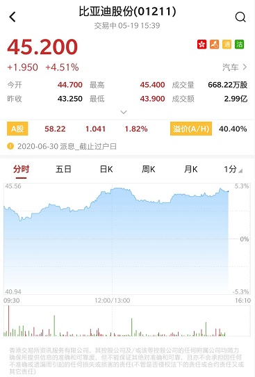 智通财经APP获悉,比亚迪在互动平台上表示,比亚迪已经陆续掌握IGBT芯片设计和制造、模组设计和制造、大功率器件测试应用平台、电源及电控等环节,是中国唯一一家拥有IGBT完整产业链的车企。港股比亚迪股份(01211)走强,截至发稿,涨4.51%,报45.2港元,成交额3亿港元。