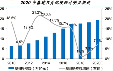 其次在逆周期调节政策上,中央层面“稳增长、稳就业”目标明确,基建投资或助推用气需求回升。据了解,近期北京、河北、上海、江苏等多省份密集推出年度重大基建项目和投资计划,1-2月全国批复基建项目总投资同比增长 69%至 2286 亿元,远超近年同期水平。机构测算,2020 全年基建投资增速或明显提升至 7.1%。基建投资加速将直接利好工业用气需求回升,预计二三季度出现恢复性反弹。