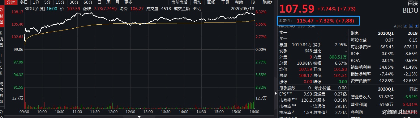 在业绩超预期的提振下,百度盘后股价一度涨超10%。