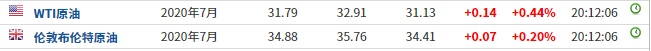 截至发稿,WTI原油涨0.44%,报31.79美元/桶。布伦特原油涨0.20%,报34.88美元/桶。