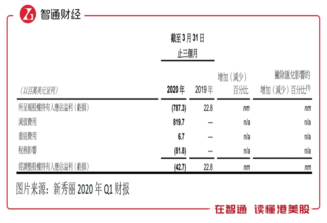 该公司Q1亏损额比较大,主要为受卫生事件影响,产生了减值费用,数额达8.2亿美元,不过即使扣除减值费用及重组费用等非经营项目,经调整的股东净利润仍亏损0.43亿美元,同比由盈转亏。