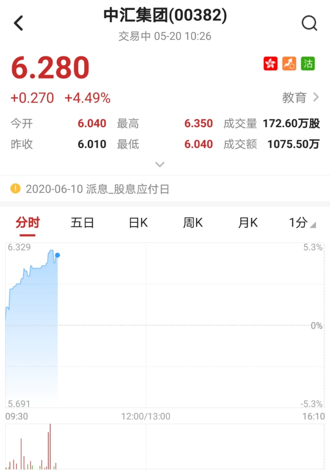 智通财经APP获悉,中泰国际发布研报称,中汇集团(00382)作为湾区内最大名办高校,将随着大湾区的发展,区内对拥有专业技能的人才需求不断增长,中汇集团的地缘优势将尤为明显。该行首次覆盖“买入”评级,目标价看高至7.1港元。该股盘中涨超5%,突破所有均线,再次刷新历史新高。截至10时26分,涨4.49%,报价6.28港元,成交额1075.5万。