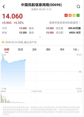 港股异动︱中国民航信息网络(00696)现涨6.5% 获麦格理上调目标价25%至18.8港元
