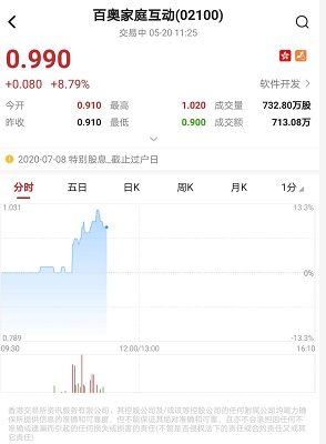 智通财经APP获悉,百奥家庭互动(02100)月内四度回购,共涉及291万股,涉资254.35万港元,截至11时25分,涨8.79%,报价0.99港元,成交额713.08万。