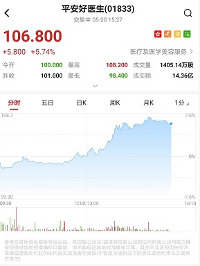 智通财经APP获悉,平安好医生(01833)午后涨幅一度扩大逾6%,突破多条均线。截至15时27分,涨5.74%,报价106.8港元,成交额14.36亿。