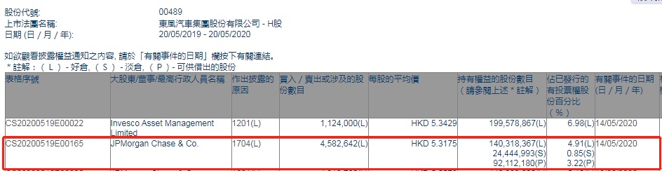 智通财经APP获悉,联交所最新资料显示,5月14日,摩根大通减持东风集团(00489)458.2642万股,每股作价5.3175港元,总金额约为2436.82万港元。减持后最新持股数目约为1.40亿股,最新持股比例为4.91%。
