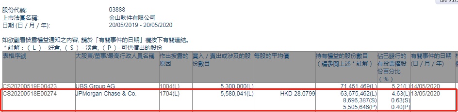 智通财经APP获悉,联交所最新资料显示,5月13日,摩根大通减持金山软件(03888)558.0041万股,每股作价28.0799港元,总金额约为1.57亿港元。减持后最新持股数目约为6367.55万股,最新持股比例为4.63%。