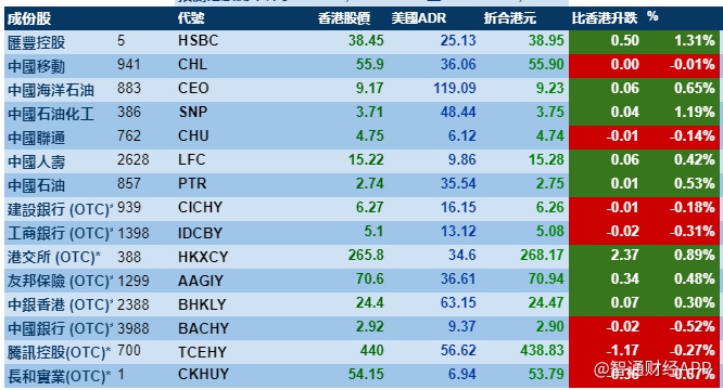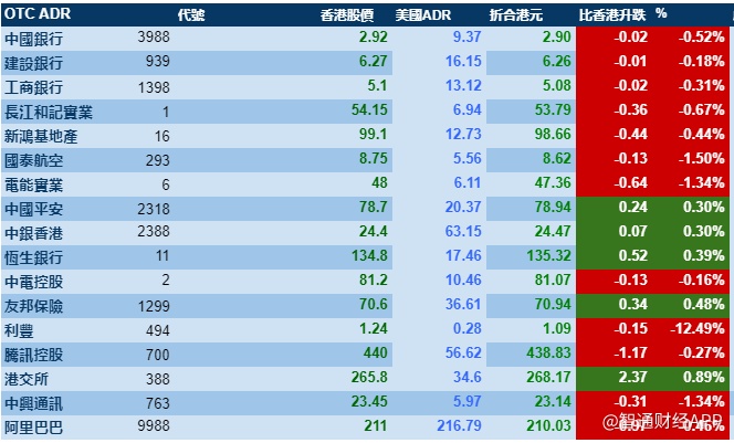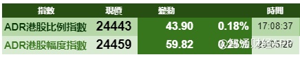智通财经APP获悉,周三美股收涨,港股ADR指数跟随向上,按比例计算,收报24,443点,涨43.90点或0.94%。