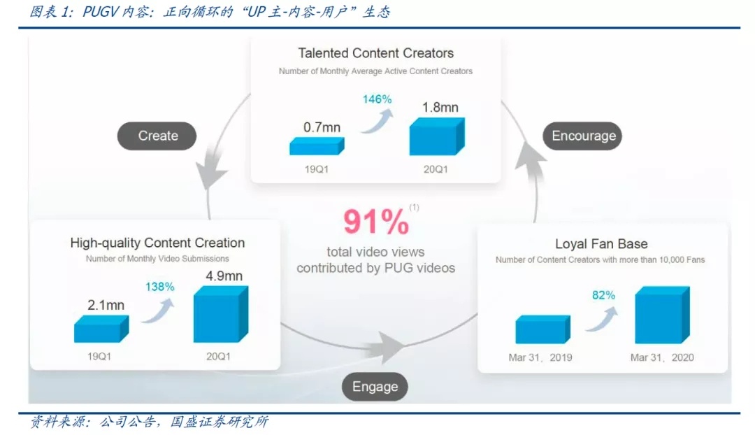 首先,PUGV内容生态的正向循环是本季度公司的重要亮点。公司加大对UP主变现的扶持;本季公司月度活跃UP主数量增加146%至180万,月度上传视频数增加138%至490万,拥有1万以上粉丝的UP主数量增长82%。其次,OGV内容的丰富也提升了用户的付费转化。再次,各类企业品宣活动和社会热点内容策划等大大提升了B站的平台影响力。