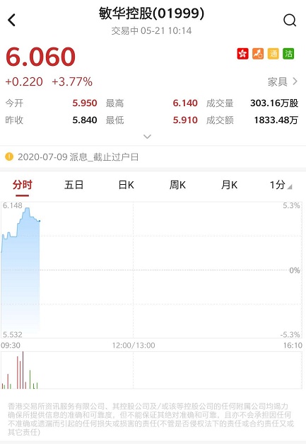 智通财经APP获悉,中金发表研报表示,敏华控股(01999)2020财年纯利16.38亿港元,按年升20.1%,略高于该行预期。该行维持目标价7港元,评级为优于大市。汇丰则表示,将目标价由6.13港元升至6.38港元,维持“买入”评级。截至发稿,敏华控股涨3.6%,报6.05港元,成交额1924.91万港元。