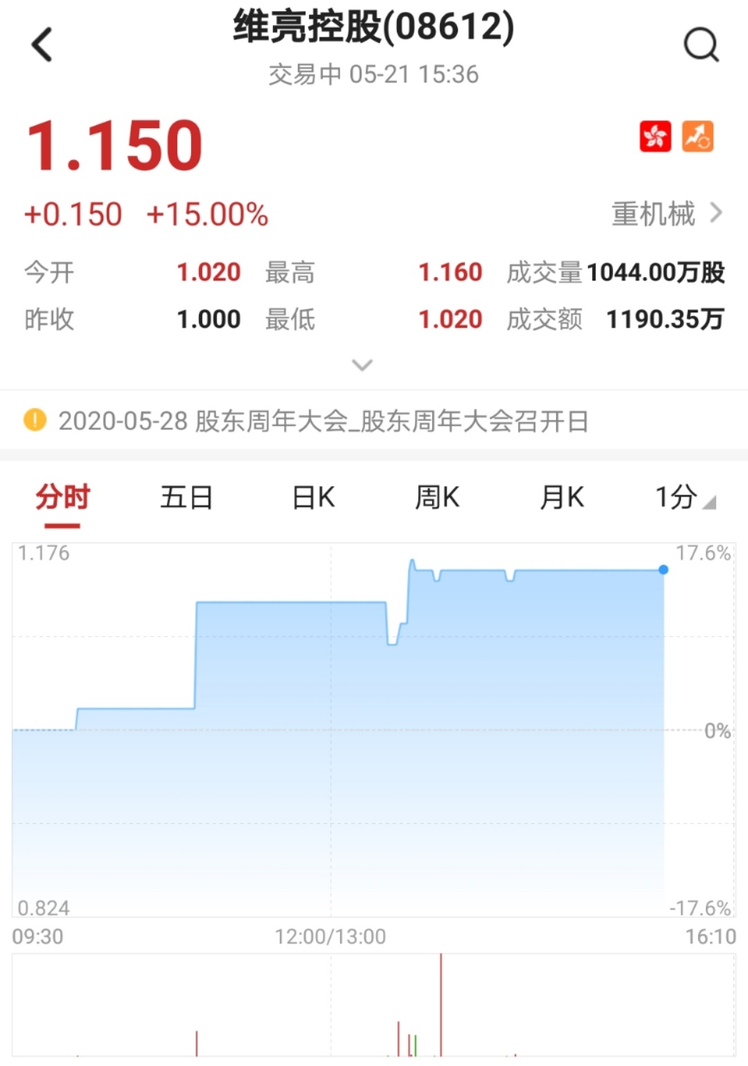 智通财经APP获悉,维亮控股(08612)近日公布,一季度公司收入达2779.59万港元,同比增161.86%;毛利972.95万港元,同比增105.69%;净利润达325.99万港元,同比增长894.00%;每股盈利0.54元。该股盘中涨超15%,突破所有均线。截至15时36分,涨15%,报价1.15港元,成交额1190.35万。