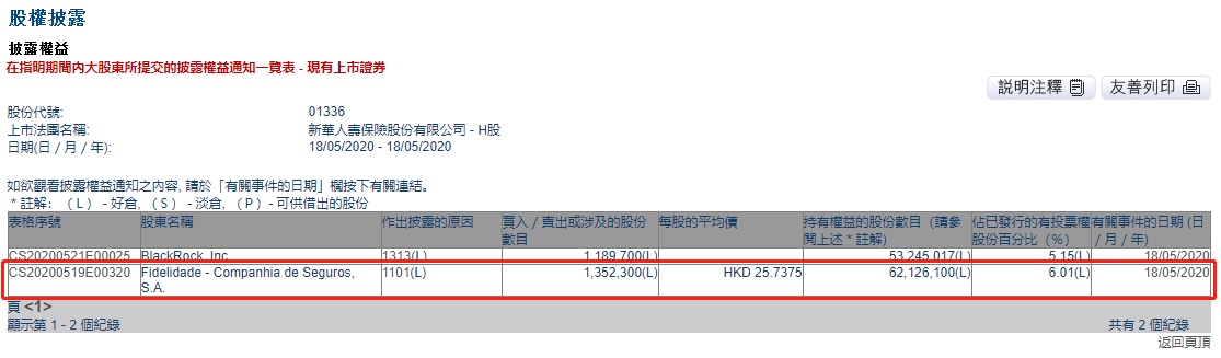 智通财经APP获悉,联交所最新资料显示,5月18日,Fidelidade增持新华保险(01336)135.23万股,每股作价25.7375港元,总金额约为3480.48万港元。增持后最新持股数目约为6212.61万股,最新持股比例为6.01%。