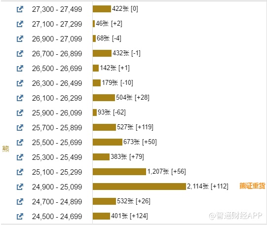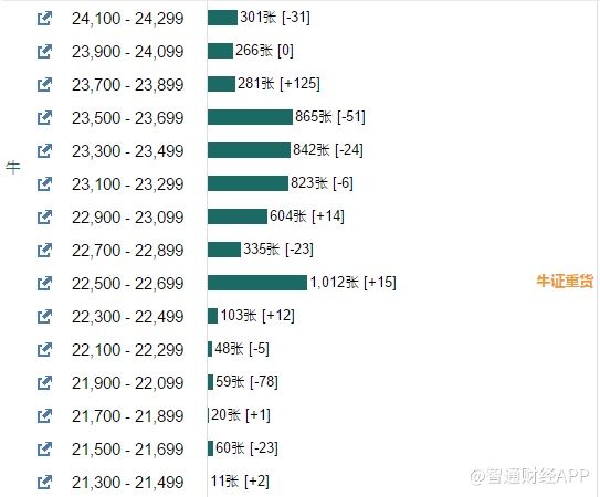 智通财经APP获悉,截至5月21日,恒指最新的牛熊街货比例41:59。摩根恒指牛熊证街货分布图中的数据显示,熊证街货重货区在24900-25099区间,该区间最新熊证数量为2114张,较上一交易日增加112张,最多新增在24500-24699区间,新增124张。牛证街货重货区在22500-22699区间,该区间最新牛证数量为1012张,较上一交易日增加15张,最多新增区间在23700-23899区间,该区间最新熊证数量为281张,较上一交易日增加125张。