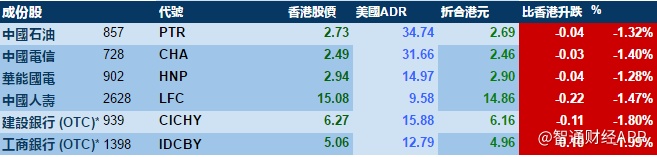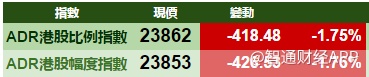 智通财经APP获悉,周四美股全线收跌,港股ADR指数承压,按比例计算,收报23,862点,跌418点或1.75%。
