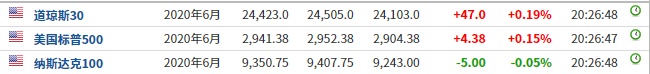 科技股方面,苹果(AAPL.US)盘前涨0.01%,亚马逊(AMZN.US)盘前涨0.07%,Facebook(FB.US)盘前跌0.08%,奈飞(NFLX.US)盘前涨0.17%,微软(MSFT.US)盘前跌0.23%。