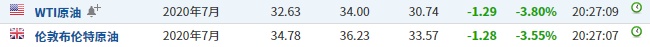 截至发稿,WTI原油跌3.80%,报32.63美元/桶。布伦特原油跌3.55%,报34.78美元/桶。