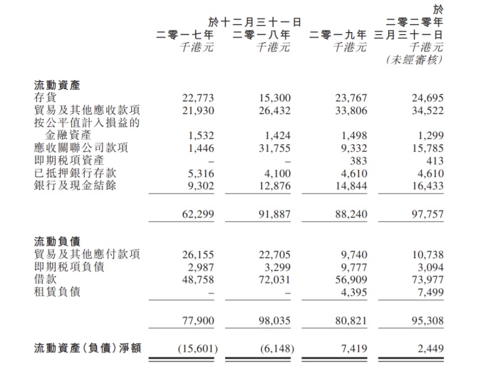 公司的流动资产净额由2019财政年度的约742万港元减少67.0%至2020年3月31日约240万港元,这主要由于公司借款增加。