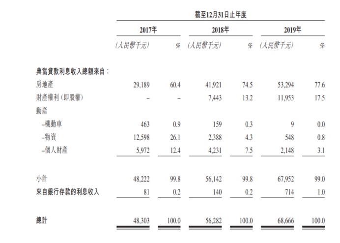 值得一提的是,于往绩记录期间,公司利息收入总额大多来自房地产典当贷款,分别占利息收入总额约60.4%、74.5%及77.6%。