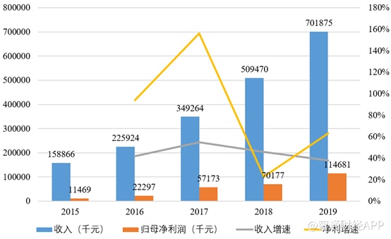 2015年至2019年其毛利率从16.45%增长至28.07%,增长超过10个百分点,净利率波动时上升,从7.22%增长至16.37%,增幅超过1倍,这要归功于其毛利率上升的同时,费用率的控制较好,2019年8.06%,仅比2015年增加1个百分点。