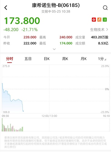 港股异动 | 康希诺生物-B(06185)高开低走现跌逾27% 振幅达36%